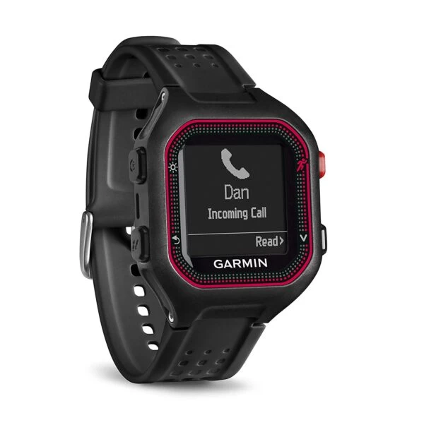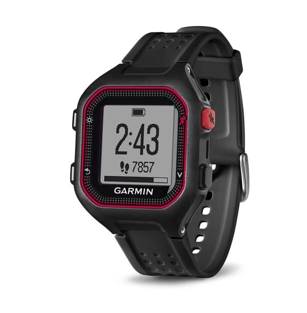 - COMPACT – Forerunner 25 provides a larger display in a thinner watch with a 32% larger active display area than the Forerunner 15.