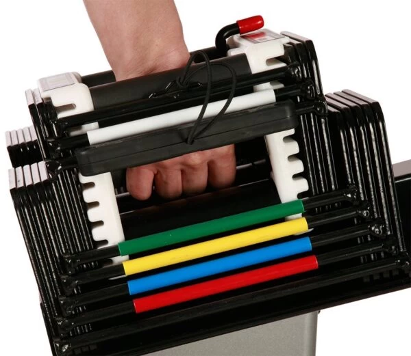 - Replaces 15 pairs of dumbbells