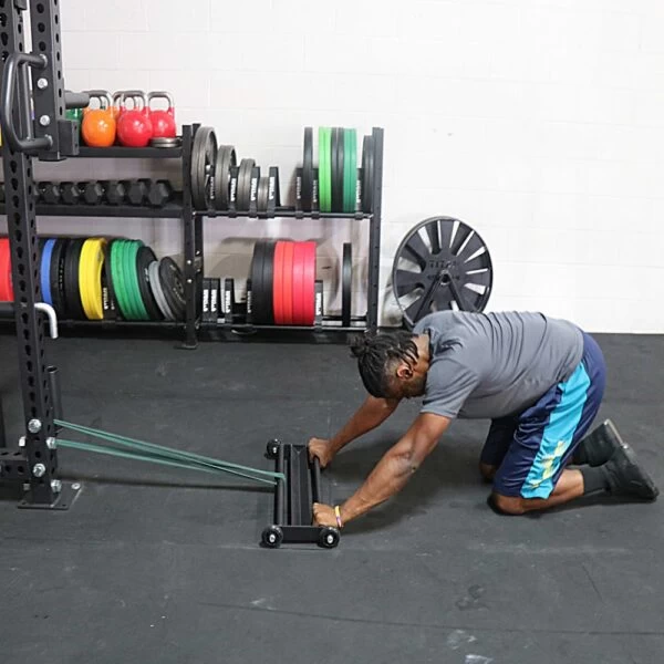 The Titan Glute Ham Glider is a great tool for training the entire posterior chain. Simply insert your toes/heels into the v-shaped notch or grab the bars with your hands to perform hamstring curls, glute raises, glute bridges, standing lunges, abdominal roll-outs and much more! For an enhanced workout try adding bands to create resistance during exercises.