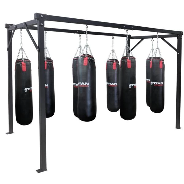 The Titan Heavy Duty 8 Bag Boxing Stand is the perfect addition to any gym! This boxing stand is made of 3″ x 3″ powder coated steel beams and bolts down at each corner for a secure movement free construction. This stand is built to last and will put up with the most intense workouts without breaking a sweat.