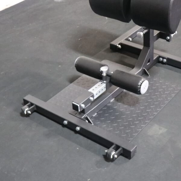 The Titan Standing Back Extension Machine is a fully adjustable unit allowing the user to perform a wide variety of posterior chain exercises. By adjusting the height or angle of the main pad in combination with the foot roller, your workout possibilities are endless and it’s suitable for almost all sizes of athletes. Use the two removable band pegs or the two fixed band pegs for added difficulty!